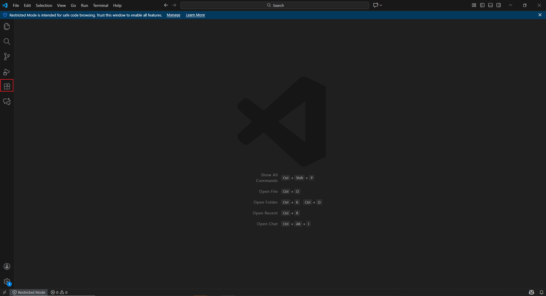VS Code를 켜고 좌측 메뉴의 Extension에서