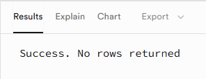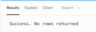실행 후 Supabase에서 SQL로 확인을 해보면 아래 이미지와 같이 결과가 조회되지 않는다고 나옵니다. 즉 로컬에서 삭제를 했을 시에 대한 테스트도 성공한 것으로 볼 수 있습니다.