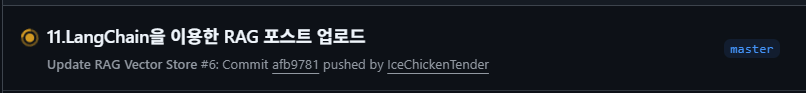 아래 이미지와 같이 “LangChain-11-LangChain_RAG-post”로 조회를 해보면 아무런 결과가 없는 것을 확인할 수 있습니다. 그렇다면 작성된 “11.LangChain을 이용한 RAG” 포스트를 master 브랜치에 push 해보도록 하겠습니다.