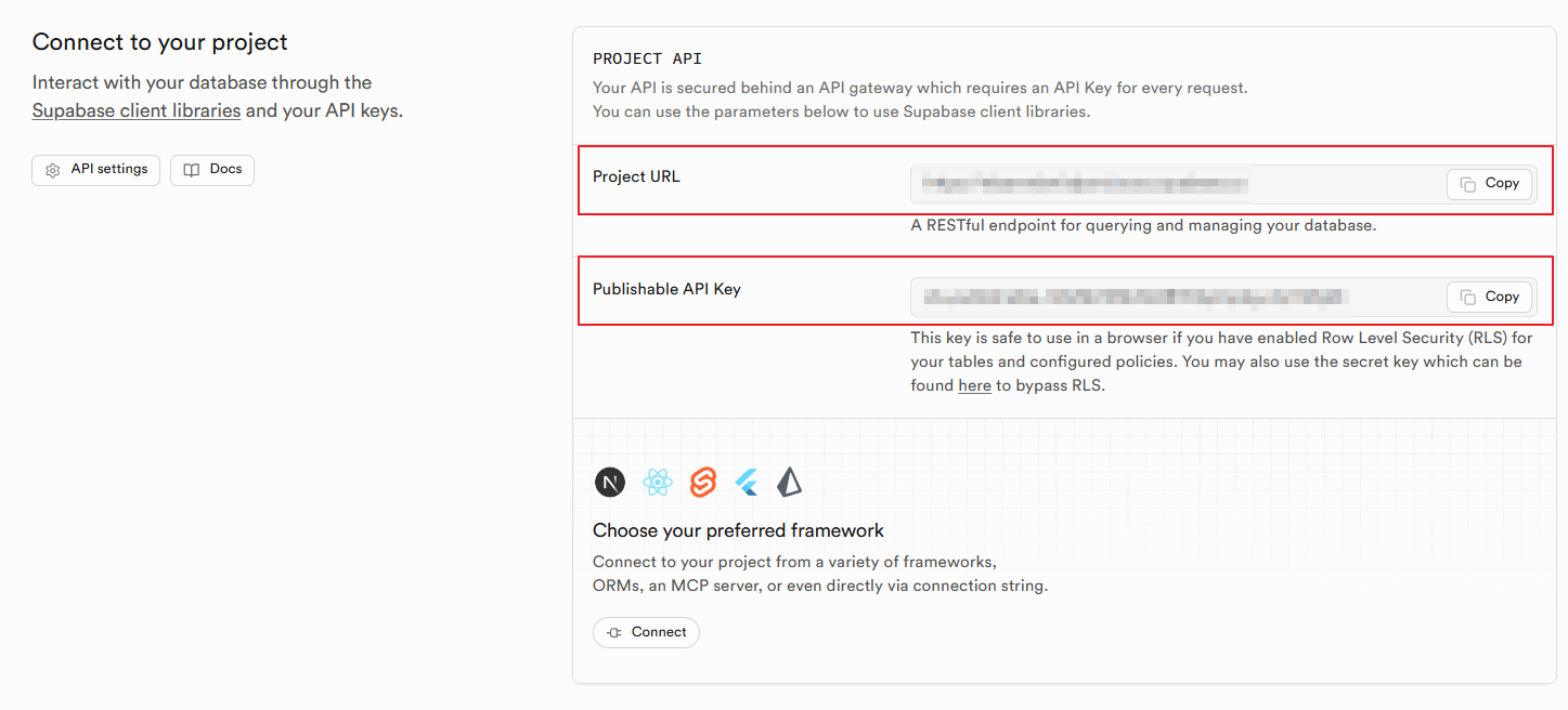 현재 제가 사용하고 있는 PC는 거의 10년이 다 되어 가고 있어 벡터 DB를 운용할 수 있을 정도로 성능이 나오지 않는다고 판단하였습니다. 그래서 벡터 DB를 사용할 수 있는 여러 플랫폼을 찾아보다가 Supabase라고 현재 제 상황에서 무료로 벡터 DB를 사용할 수 있는 플랫폼을 알게 되었습니다. 그래서 제 github 아이디를 연동했고, 새로운 프로젝트를 만들어 제가 사용할 벡터 DB 환경을 구축하였습니다. 새로운 프로젝트를 만들고 첫 화면인 “Project Overview” 화면에서 아래로 내리면 자신의 프로젝트에 연동할 수 있는 url과 api key가 있습니다. 나중에 이 정보를 사용해야 되니 위치를 잘 기억해 두시길 바랍니다.
